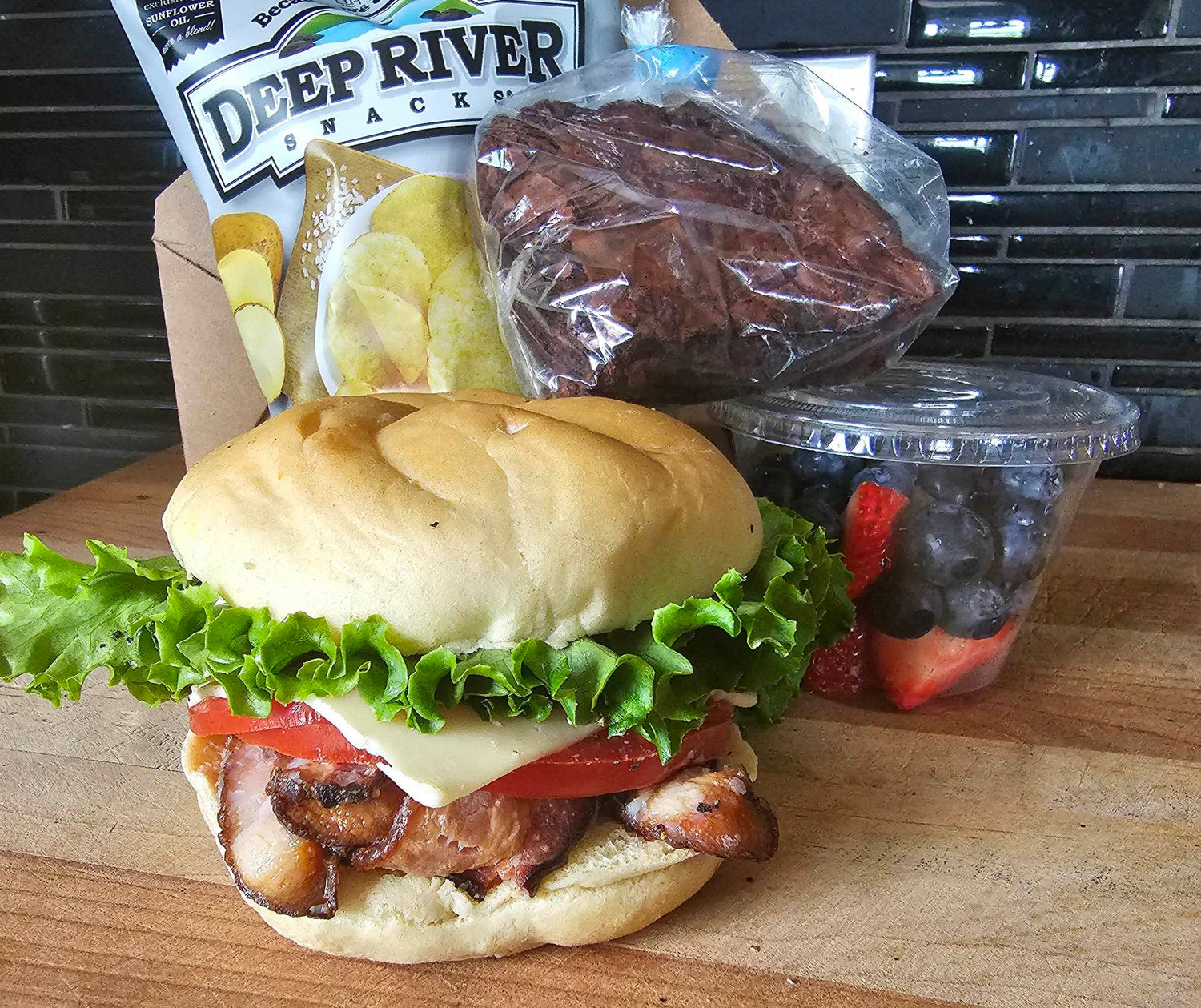 Our boxed lunches are the perfect all-in-one solution: a variety of fresh sandwiches, sides, and a homemade dessert in one easy-to-grab package. Affordable, healthy, and ready when you are.